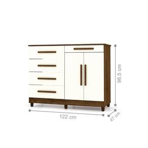 A Cômoda conta com cinco gavetas amplas para organizar todas suas roupas, possui uma prateleiras móveis para organizar seus sapatos, livros e caixas.