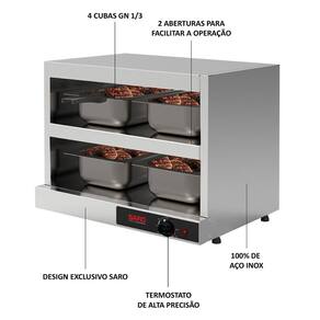 O CM Conservador de Proteínas Saro 4 Cubas é o equipamento ideal para quem busca excelência no armazenamento de proteínas. Projetado especialmente para a indústria alimentícia, esse conservador é amplamente utilizado em bares, restaurantes, hamburguerias, food trucks e hotéis. Com controle preciso de temperatura, ele garante a segurança e a qualidade das amostras armazenadas, minimizando o consumo de energia. Com suas 4 cubas GN 1/3 em 100% inox e design exclusivo da Saro, é perfeito para organizar e preservar a frescura de carnes, peixes e outros alimentos, proporcionando praticidade e eficiência na rotina do seu estabelecimento.