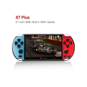 Características:\ nTela grande de alta definição de 7 polegadas (4,3 “/5,1"), melhor qualidade de imagem, proteção para os olhos. Console de jogos multifuncional, também suporta vídeo, música, e-books e outras funções. Memória de 16 GB/8 GB, mais de 1000 jogos embutidos, compatível com expansão de cartão TF. Suporta saída de vídeo de interface AV, conecte TV ou outras telas. Modo de controle duplo Cross Key + Rocker, jogando jogos de luta livremente. Especificações: Modelo: X7/X7 Plus/X12/X12 Plus Tipo: console de jogos\ nCor: azul e vermelho e vermelho-azul\ nMaterial: ABS Tamanho da tela: 4,3/5,1/7 polegadas” Console de jogos embutido: 1000 + Capacidade da bateria: 2500 mAh Método de download: conecte à porta USB do computador para baixarFormato de vídeo: BMVB, FLV, AVI, MP4, 3GP (suporta reprodução de vídeo 1080* 720P) voltar) Formato de música: MP3, WMA, WAV, etc. Se ele suporta economia de progresso:\ nExpansão máxima de memória:\ nCartão TF máximo de 32G (não incluído)\ nSe ele suporta saída AV: Sim\ nTamanho do pacote: 28,5* 13,5 * 5 cm/11,2 * 5,3* 2,0\ nPeso da embalagem: 504 g/17,8\ nLista de pacotes: 1 * Console de jogos\ n1 * Cabo de carregamento\ n1 * Fone de ouvido\ n1 * Manual do usuário