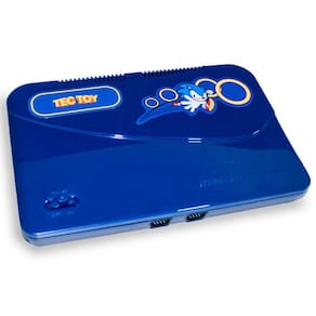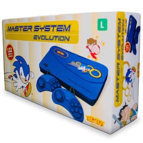 O novo Console Master System Evolution foi fabricado pela marca Tectoy e apresenta um design super moderno na cor azul conta ainda com uma linda imagem do personagem Sonic, além de acompanhar dois controles.