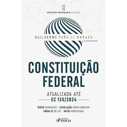 Sobre a obra Constituição federal - 11 Ed - 2025 Atualizada até a EC 135/2024 A Constituição Federal foi promulgada em 05 de Outubro de 1988 e, desde então, inúmeras foram as alterações legislativas, súmulas e emendas constitucionais que impactaram diretamente na interpretação e integração das normas do ordenamento jurídico brasileiro. Além disso, as interpretações do Supremo Tribunal Federal, através do controle de constitucionalidade, vieram esclarecer o conteúdo da norma e outras configuraram verdadeira mutação constitucional. Dada a complexidade de interpretação do texto constitucional, a Editora FOCO, sob a organização do Prof. Guilherme Pea de Moraes, acompanhando o projeto gráfico e a apresentação dos Manuais de Legislação Foco, organizou o texto da Constituição Federal com a intenção de oferecer ferramenta de pesquisa aos profissionais e acadêmicos da área jurídica. A organização conta com um detalhado índice sistemático; texto na íntegra da Constituição Federal atualizado até a Emenda Constitucional 135/2024; a íntegra dos atos das disposições transitórias; as Emendas Constitucionais; a legislação correlata ao Direito Constitucional; índice remissivo indicando o assunto e o artigo da norma constitucional além das súmulas do STF. As notas inseridas aos artigos e em abertura de capítulo relacionam as normas da constituição, legislação, súmulas, súmulas vinculantes e as ações do controle de constitucionalidade concentrado que tramitaram perante o Supremo Tribunal Federal. Boa leitura! Autor Guilherme Pea de Moraes