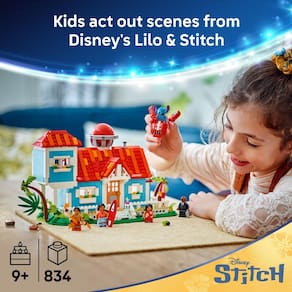 LEGO Brinquedo Disney Lilo and Stitch Beach House – Conjunto de montar para crianças, meninas e meninos, a partir de 9 anos – Inclui 5 miniaturas – Ideia de presente da Disney para fãs do filme Lilo & - Brinquedo LILO & STITCH – Envolva meninas e meninos, a partir de 9 anos de idade, com este conjunto de fantasia montável Lilo and Stitch Beach House que desperta brincadeiras divertidas e imaginativas enquanto eles criam e exploram a casa - 5 miniaturas da Disney – possui uma casa montável com 6 cômodos e um observatório na cobertura para a nave espacial, além de miniaturas da LEGO Disney de Lilo, Stitch, Nani, David e Mr. Bolhas - Características detalhadas – A casa está cheia de ovos de Páscoa e detalhes especiais do filme de sucesso da Disney Lilo & Stitch, além de 2 pranchas de surf, uma mini guitarra, mini toca-discos e muito mais - Jogo interativo – os fãs de Lilo & Stitch da Disney podem construir a casa e a nave espacial e, em seguida, brincar de histórias infinitas com todos os personagens da Disney antes de colocar a casa em exibição quando a brincadeira terminar - Presente LILO & STITCH – Este conjunto de montar da Disney da LEGO é ótimo para meninas, meninos e fãs que amam esses amigos extraterrestres brincalhões do filme - Fácil de montar – Descubra instruções intuitivas no aplicativo LEGO Builder, onde os construtores podem ampliar e girar modelos em 3D, acompanhar seu progresso e salvar conjuntos à medida que desenvolvem novas habilidades - Dimensões – A casa de praia do sucesso da Disney Lilo & Stitch neste conjunto de 834 peças LEGO montável da Disney mede mais de 18 cm. (17 cm) de altura, 33 cm. (35 cm) de largura e 14 cm. (14 cm) de profundidade