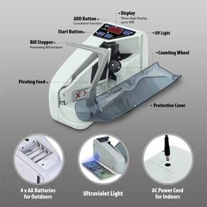 Principais Características: Tecnologia de Detecção IR: Equipado com tecnologia infravermelha para garantir uma contagem precisa e confiável. Contagem Rápida: Capaz de contar mais de 600 cédulas por minuto, oferecendo eficiência no processo. Compatibilidade com Diversas Moedas: Aceita diversas unidades monetárias de papel, como Euro, Dólar, Real, Libra Esterlina, Yuan, entre outras. Portátil e Leve: Design compacto e peso aproximado de 400g, facilitando o transporte e a mobilidade. Duas Funções: Contar e Somar: Oferece versatilidade com funções de contagem e soma, simplificando o trabalho do usuário.