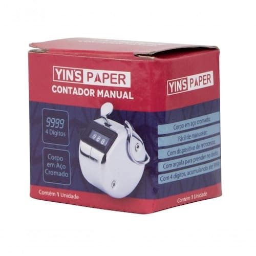 Contador Manual 4 Dígitos - Yin's Paper Desenvolvido para facilitar a contagem, o Contador Manual torna o controle de fluxo mais ágil. Seus 4 dígitos chegam a contar até 9999. Pode ser utilizado para o controle de produtos, fluxo de pessoas em empresas, festas, reuniões, pesquisas e etc. Possui corpo em aço cromado e argola para prender no dedo. Possui dispositivo de retrocesso, Acompanha botão manual de disparo. Código: 081113 Cor: Cromado Dimensões aprox. da embalagem em cm: 5x5x4 Peso liq. Aproximado do produto na embalagem: 50g Referência do Modelo: YP7124 Conteúdo da Embalagem: 01 contador manual Composição/material: Aço cromado e resina termoplástica. Garantia: 90 dias contra defeitos de fabricação pelo fabricante Imagens meramente ilustrativas. As cores e tonalidades podem variar.