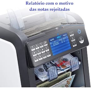 Capacidade do hopper 600pcs Capacidade do stacker 200pcs Moedas real, dolar, euro + 5 moedas estrangeiras Funções: soma, lotes, mix, add, tela touch screen Tamanho das cédulas: 100mm175mm - 50mm90mm Espessura das cédulas: 0.05mm0.12mm Velocidade pcs / min : 800,1000,1200 mix mode / 800,1000 serial number reading mode Ram: 1g Lotes: 5-199pcs Conectividade: usb for data collection and software upgrade Rs232 for pc communication Rj 12 for external display Wlan for data collection and software upgrade in batch Detecção de cédulas falsas: Ultraviolet detection uv Magnetism detection mg Metal thread detection mt Infrared image detection ir Double sides image detection / 2 cis Power supply: bivolt ac 220v 50hz 10% ac 110v 60hz 10% Dimensão: 287 h x 240 w x 232 d mm Peso: 5.9 kg : 12 meses para defeitos de fabricação Assistência técnica em todo o brasil Marca: Não Informado Ean: 7898967088260