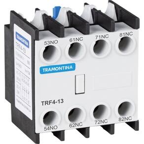 Contato Auxiliar Frontal Para Contator Tramontina Trf4-13 1na+3nf Contato Auxiliar Frontal para Contator Tramontina TRF4-13 1NA 3NF O Contato Auxiliar Frontal para Contator Tramontina é destinado em aplicações que necessitem de mais contatos auxiliares acoplados ao contator, como por exemplo, circuitos de comando com diversos intertravamentos elétricos.