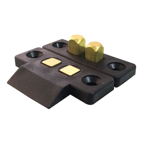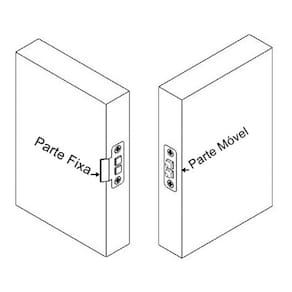 Fixação na beira do portão, para que os fios não fiquem à mostra ou dobrados com a abertura e fechamento do portão. Composto por um par de contato construídos em latão, sendo que um será embutido na folha da porta e outro no batente.
