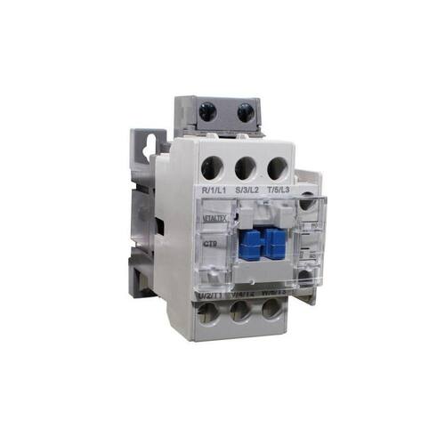 Os contatores da linha CT possuem desenho moderno, robusto e de acordo com IEC-60947. São ideais para montagem em trilho DIN ou fundo de painel. Oferecem tensão de comando VCA ou VCC até o modelo 40A . Dispõe de uma linha completa de acessórios, tais como, contatos auxiliares, bloco de intertravamento, bloco de contato para partida de capacitores, relés térmicos, bases para relé térmico e adaptadores para interligação com disjuntor motor.Modelo: CT9Tensão da Bobina: 220VCCFrequência da Tensão da Bobina: 50/60HzArranjo dos Contatos:- Contato Principal: 3NA- Contato Auxiliar: 1NA+1NFAC1 IEC Ith A : 25Tensão VCA / 3: 200/240Capacidade AC3:- Ie A : 11- P kW : 2,5- P HP : 3Tensão VCA / 3: 380/440Capacidade AC3:- Ie A : 9- P kW : 4- P HP : 5Dimensões LxAxC : 44x80x86,8mmREF: CT9-H5-311 2386