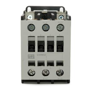 CONTATOR TRIPOLAR CWM32-00-30V26 32A 220VCA WEG Os contatores tripolares WEG apresentam alta tecnologia, representando segurança e facilidade de instalação e manutenção. Possuem alternativa de contatos auxiliares fixos ou através de blocos aditivos.