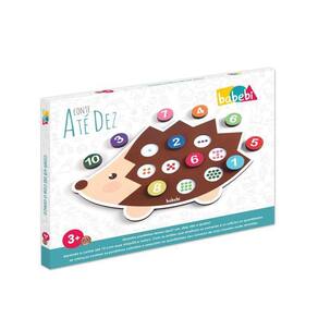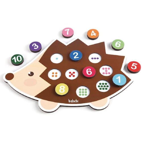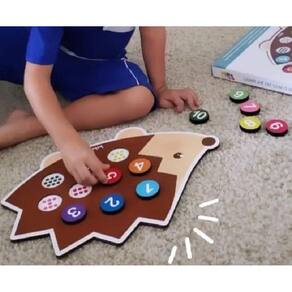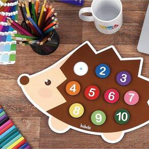 - Aprender a contar nunca foi tão divertido! Com esse simpático ouriço, as crianças vão aprender os números de 1 até 10. Este é um brinquedo que estimula não só o aprendizado dos números, como também permite o encaixe das peças em orifícios que representam suas respectivas quantidades. - Indicado para crianças a partir de 3 anos. - O Tabuleiro mede 40 x 28 cm. - Contém 1 tabuleiro e 10 peças. - Feito de madeira de Reflorestamento e Certificada. - Possui o Selo Abrinq e o Selo de Segurança do Brinquedo do InMetro: CE-BRI/TUV-0018712.0
