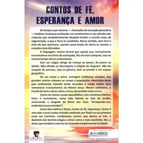 Como bem define o título, Contos de Fé, Esperança e Amor é uma ode a essas santas virtudes exaltadas por Paulo na sua primeira carta aos Coríntios. Lembremos, porém, que dentre as três, o Apóstolo dos Gentios elegeu o Amor como a mais excelente. Sim, Amor, que também costuma ser chamado simplesmente Caridade.