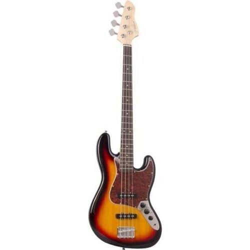 Com relação às especificações técnicas, o Contrabaixo Elétrico Passivo Giannini GB-100 Jazz Bass possui escala de 34 polegadas, corpo em basswood, braço em maple, escala em rosewood, 20 trastes e marcação dot.