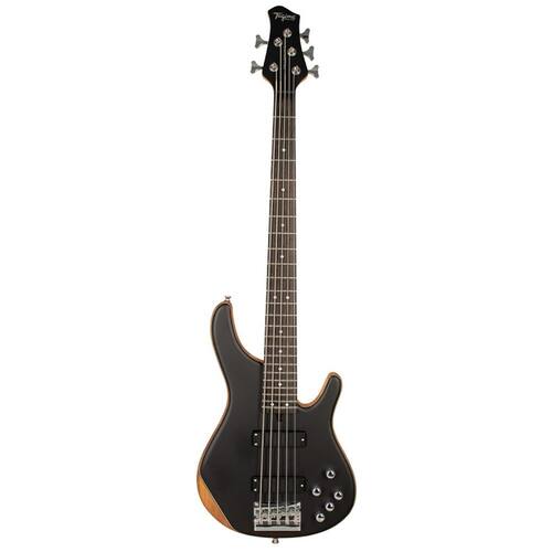 * Tampo em techwood: madeira estável e resistente, que contribui para a definição do timbre e realce dos médios. * Corpo em okoume: leve e equilibrado, oferece sonoridade encorpada e sustain natural. * Braço em maple com shape C: construção firme, confortável para longas execuções e resposta rápida nas notas. * Escala em techwood: proporciona maciez ao toque e excelente articulação sonora. * 24 trastes: amplia a extensão tonal, permitindo explorar graves poderosos e agudos brilhantes. * Tarraxas diecast: mantêm a afinação estável, ideais para ensaios longos e apresentações ao vivo. * Ponte estável: garante sustain consistente e entonação precisa em todas as cordas. * Captação Tagima ativa: sistema moderno com equalização que permite ajustar graves, médios e agudos de forma prática, entregando timbres versáteis para diversos estilos musicais. * 5 cordas: adiciona a extensão do Si grave (B), essencial para músicos que necessitam de mais profundidade e recursos harmônicos. * Cor Natural Satin: acabamento elegante que valoriza os veios da madeira, com aparência clean e sofisticada.