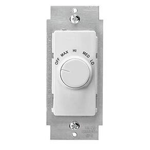Control de velocidad para ventilador Leviton Decora Illumatech silencioso, 120 Vca, 60 Hz, 1.5 A, RTF01-10W, color blanco. - Control de atenuador de un solo polo, sin iluminación, 300W. - Compatible con placas de pared Decora sin tornillos, estándar y de nylon. - Carcasa compacta y delgada que se adapta fácilmente a una caja de pared estándar. - Incluye instrucciones de cableado. - Listado por UL, certificado por CSA.