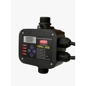 Controlador de Pressão Eletrônico Thebe - Linha PressMODELO: TPC-58 - 1/4 a 1.0 Cv - 127vCÓDIGO: 1127.04.10660Características- Liga / Desliga Automático - Válvula de retenção incorporado - Ausência Vaso de Expansão - Display Digital (Pressão em tempo real) - Pressão do Sistema Auto Ajustável conforme cada Bomba - Não necessita de Parametrização - Proteção contra trabalho à seco - Proteção contra Sobre tensão e Sobre pressão- Religamento automático - Após longo tempo sem operação, o sistema aciona protegendo contra o travamento da bomba - Poderá utilizar o controlador Thebe Press com motores trifásicos através de contatora.- Utilizado para água limpa até temperatura de 40ºC.- Pressão máxima de 90mca- Vazão máxima de 5m/h. - Grau de Proteção IP-65.- Frequência de 50/60HZ. Aplicações em PRESSURIZAÇÕES:Prediais;Residenciais;Sistemas de Irrigação;Industriais;Abastecimento de reservatórios.Garantia 12 meses.
