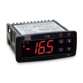 Descrição do produto: Controlador para refrigeração congeladosO modelo y39 foi desenvolvido para aplicações em refrigeração com controle de temperatura on/off e controle de degelo por intervalo de tempos mediante parada do compressor, aquecimento elétrico ou gás quente com inversão de ciclo. O instrumento possui 3 saídas a relé e 3 entradas para sondas ntc, com a possibilidade de 1 entrada ser configurada como entrada digital. As 3 saídas podem ser configuradas para comando do compressor, degelo, ventilador, saída auxiliar ou alarme. As 3 entradas para sondas de temperatura são utilizadas para controle da temperatura ambiente, para monitorar a temperatura do evaporador e para medir uma temperatura auxiliar (exemplo: temperatura do produto). A entrada 2 ou 3 pode ser configurada como entrada digital e executar algumas funções como: sinalização de porta aberta, comando de degelo, seleção do Set Point de controle, sinalização de alarme externo, ativação do ciclo continuo, ativação da saída auxiliar.Caracteristicas:Alimentação: 100 a 240 vca,Display vermelho,2 entradas para sensor ntc (ambiente + evaporador)1 entrada digital (esta entrada pode ser configurada como 3º sensor)3 saídas relé Qualquer saída pode ser configurada como compressor, degelo, ventilador, alarme ou auxiliarDegelo elétrico, por inversão de gás ou dinâmico (que proporciona economia de energia)Certificação ul e ce.Aplicações:AdegasBalcões frigoríficosFreezersFreezers verticaisIlhas refrigeradas. Ean: 7895113225692