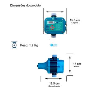 CARACTERÍSTICAS - Protege sua motobomba contra trabalho a seco, sobrepressão, sobretensão e subtensão. - Controla o funcionamento da bomba elétrica, ligando e desligando a mesma conforme o consumo de água. - Não necessita a instalação de tanque de expansão e da válvula de retenção. - Os componentes elétricos são isolados e vedados da água da tubulação, proporcionando assim maior segurança ao equipamento.
