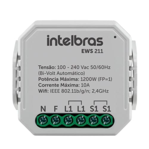 O Controlador inteligente EWS 211 com uma entrada para interruptor comum e uma saída é utilizado no acionamento automático através de aplicativo em ambientes residenciais e comerciais. O EWS 211 permite que o usuário acione, controle e automatize remotamente equipamentos elétricos através do aplicativo IZY Smart de maneira fácil e inteligente. O produto alia características de praticidade, economia de energia e segurança.-Ideal para instalar em caixas 4x2 ou em caixa de teto;-Conexão direta ao roteador, sem necessidade de hub central;-Controle por aplicativo;-Entrada para um interruptor comum, transforma interruptor comum em interruptor inteligente;-Realização de automações residenciais;-Realização de cenários;-Compatibilidade com Amazon Alexa e Google Assistente.TORNE SUA CASA INTELIGENTE DE FORMA DISCRETA!O mini controlador smart é ideal para embutir em caixa 4×2, tornando ambientes discretos e inteligentes.COMPATÍVEL COM INTERRUPTOR:Aciona a iluminação de até 2 cenários diferentes, simultaneamente, via app ou comando de voz, sem perder a funcionalidade do interruptor.PROGRAME ROTINAS DE ACIONAMENTO:Controle a iluminação, simulando presença ou programando lâmpadas como despertador, ou acione ventiladores e cafeteiras remotamente.CONTROLE COMPARTILHADO:Cadastre até 10 usuários no aplicativo Izy e utilize o dispositivo com sua família.ESPECIFICAÇÕES TÉCNICAS:Tensão de Alimentação Bivolt automático: (100 ~ 240 Vac)Frequência da rede elétrica: 50/60 HzPotência Máxima de carga: 1200 W (FP=1)Corrente máxima: 10 A (FP=1)Consumo de energia máximo: 1,2 WTemperatura de operação: 0 a 40 °CEntrada para interruptor: 1 (entrada para o retorno do interruptor)Distância máxima: 15 a 20 m com visada direta ao roteadorWi-fi: IEEE 802.11b/g/n 2.4 GhzSegurança de dados: WEP64 / WEP128 / TKIP / AESSistemas compatíveis: IOS (9.0 ou superior) / Android ( 4.4 ou superior)Local de instalação: Ideal para embutir em caixa 4x2 ou caixa de tetoBitola máxima de fio: 1.5 mm²Cor: BrancoMaterial plástico: Proteção Anti-chamaCARACTERÍSTICAS MECANICAS:Dimensões: 50,5 x 46 x 19mmPeso: 0,046kGCONTEÚDO DA EMBALAGEM:1x Controlador EWS 211;1x Manual de Usuário.