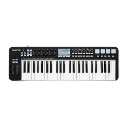 Controlador Midi Usb 49 Teclas Samson Graphite 49 Sakgr49 [f035] O controlador MIDI USB Graphite 49 oferece todo o controle de desempenho e produção de que você precisa para obter o máximo de seu software de música. Combinando um teclado semi-pesado intuitivo de 49 teclas com um conjunto de recursos útil e acessível, o Graphite 49 é uma ferramenta poderosa e elegante que permite expressar suas idéias musicais mais dinâmicas. 49 teclas semi-pesadas com aftertouch 9 faders programáveis, 8 codificadores e 16 botões para controle prático sobre sua DAW e instrumentos virtuais 4 pads de gatilho sensíveis à velocidade com aftertouch (dois bancos) para sons de bateria e amostras Grande display LCD fornece feedback em tempo real Inclui MIDI Out, USB e conexões de pedal de sustentação Design compacto, perfeito para apresentações ao vivo e aplicações de estúdio Botões dedicados de Transposição e Oitava, Rodas de Pitch Bend e Modulação 4 zonas para a criação de divisões e camadas de sons Curva de velocidade ajustável para teclas e pads alimentado por iPad e barramento USB Origem:China Unidades por Embalagem:1 Gênero:Unissex Cor:Preto Manual:Sim Material:Metal, Plástico Linha:Graphite Series Marca:Samson Modelo:SAKGR49