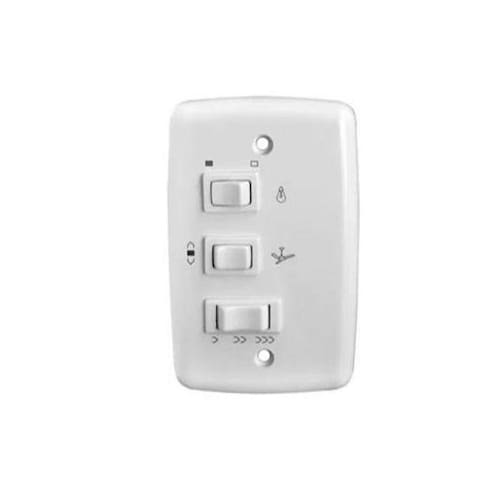 Controle de Parede paraVentilador Teto 3 Velocidades Bivolt Utilizado No Acionamento E Controle De Velocidade De Ventiladores De Teto Com Lmpada Permite ligar e desligar ventilador elmpada de forma independente, possuicontrolede 3velocidades minimo, mdio e mximo. Eo sentido de rotao de ventiladores, alm da iluminao ambiente. Interruptor de acionamento da lmpada do tipo paralelo compatvel com a maioria dos ventiladores existentes no mercado. Caractersticas Tcnicas - Cor Branco - Liga e desliga lmpada - Liga e desligaventilador - Controle de velocidade em 3 niveis:minimo , mdio emximo - Modo de ventilao e exausto modo exausto vento sentido para o teto -modo ventilao vento sentido para o cho - instalao para caixinha 4x2 - No acompanha capacitor - Voltagem: Bivolt