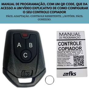 O Controle Copiador FKS Universal é a solução prática e eficiente para quem precisa duplicar e programar controles de portão eletrônico, garagem, alarmes, carros e chaves eletrônicas. Compatível com a maioria dos controles de frequência até 433MHz, ele garante facilidade no uso e mais comodidade no dia a dia. Desenvolvido com design moderno e funcional, o controle FKS é leve, resistente e pode ser levado para qualquer lugar. Ideal tanto para uso residencial quanto instaladores, condomínios e empresas de segurança . Principais Benefícios: Universal: compatível com controles remotos de portão, garagem, alarme, chave eletrônica e carro. Frequência até 433MHz: abrange ampla gama de dispositivos, garantindo maior compatibilidade. Praticidade: fácil de programar, duplicando sinais em poucos passos. Multiuso: ideal para quem deseja ter um único controle para diferentes equipamentos. Portátil e resistente: design compacto, leve e durável. Economia e conveniência: substitui ou duplica controles perdidos ou quebrados sem complicação. Como Utilizar: Apague os dados anteriores do controle FKS. Pressione os botões correspondentes para copiar o sinal. Pronto Seu novo controle já estará funcionando. Consulte o manual incluso. Conteúdo da Embalagem: 1x Controle Copiador FKS Universal Manual de instruções para programação Observações Importantes: Compatível com controles de frequência até 433MHz não funciona em frequências diferentes . Não compatível com controles rolling code criptografados. Garanta agora o Controle Copiador FKS Universal e tenha praticidade, segurança e compatibilidade em um só dispositivo Marca: Não Informado Ean: 7899906806662