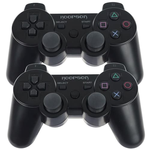 Controle Joystick Sem Fio Bluetooth Ps3 Analógico 2 UnidadesControle Joystick HoopsonSem Fio BluetoothCompatível com PS3AnalógioSistema de Vibração DoubleShockAcompanha Cabo USB para carregar