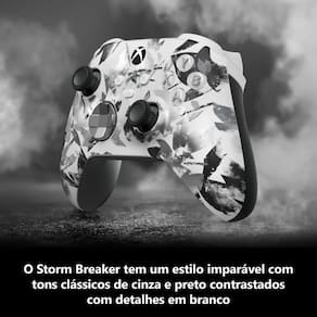 Dizem que coisas boas vêm em trio e a série especial Breaker de controles sem fio Xbox não é exceção. Essa nova e ousada família de controles inclui o Heart Breaker, Ice Breaker e Storm Breaker.Pela primeira vez, três controles especiais distintos estão sendo lançados ao mesmo tempo, cada um com sua própria personalidade e características únicas desde acabamentos metálicos até elementos translúcidos foscos oferecendo mais opções aos jogadores desde o primeiro dia.Refinado, clássico e confiante. Com uma paleta de cores fundamentada em preto, branco, cinza e prata, o Storm Breaker oferece uma alternativa sofisticada aos seus companheiros. Este controle oferece mais do que aparenta, revelando detalhes de folhagem prateada quando você o gira sob a luz.O Storm Breaker é único, equipado com botões direcionais metálicos e parte superior opaca. Assim como os anteriores, a série Breaker Special Edition vem com o confiável conector de 3,5 mm perfeito para conectar seu headset compatível favorito e conversar com amigos online