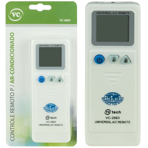 Controle remoto para ar condicional universal. Material do controle é plástico, necessita utilizar 2 pilhas AAA Não acompanha as pilhas Fácil configuração. Acompanha manual em inglês e códigos para configuração. Marca: Não Informado Ean: 7908028201207