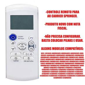 Controle Remoto Para Ar Split Carrier 40Kvca48C5 40Kvcb36C5