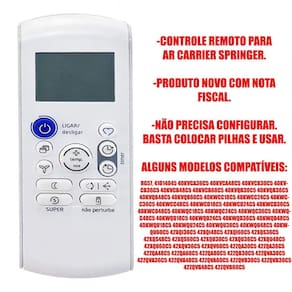 Controle Remoto Para Ar Split Carrier 42Zqa60C5 40Kwqc24C5