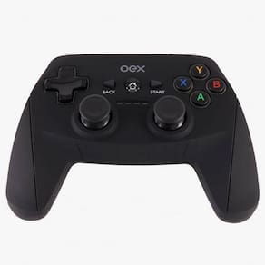 GAMEPAD ORIGIN: - Controle sem fio para Android e PC - Conexão Bluetooth SOMENTE PARA SMARTPHONE. - Frequência de 2.4GHz - Acabamento emborrachado - Opera em duas funções: controle ou mouse - Bateria de lítio embutida: 3.7V,300mA - Recarregável via USB (cabo incluso) - LED indicador de carga - Tempo de funcionamento de até 5h - 4 botões superiores (2 gatilhos) - Peso: 165g - Suporte para smartphone incluso