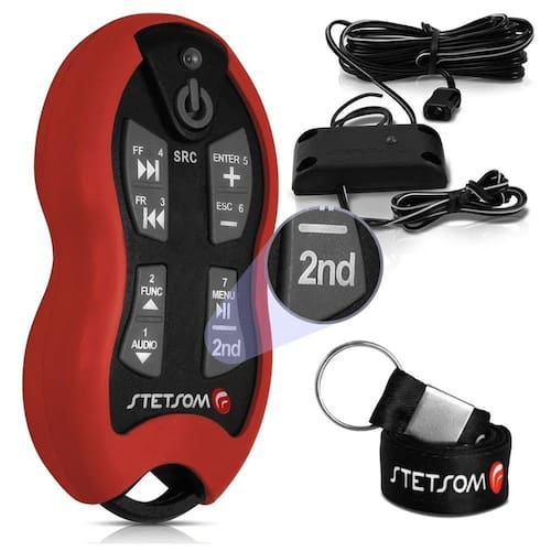 Controle Longa Distância Stetsom: Você comanda a festa de onde estiver com o Alcance Control SX-2 da Stetsom. Com alcance de até 500m em área aberta, esse controle pode ser configurado para comandar até 16 funções dos principais players automotivos do mercado, basta que este possua controle com infravermelho. Através da função aprender você pode configurar todos os botões do seu Alcance Control com facilidade, para adequar esse acessório ao seu gosto. Com capa emborrachada na cor preta e formato anatômico, o controle longa distância tem bateria de longa duração e tecnologia TX2, que permite o sincronismo de até 16 controles em uma mesma central.