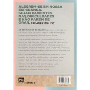 As Escrituras Sagradas apontam a importância e a necessidade da oraçãoNão se trata de obrigação ou mero cumprimento de uma ordem divinaOrar é natural para quem compreende Deus como o Senhor de sua vida e de todas as coisasSe não orarmos,deixaremos de compartilhar com o Criador alegrias e frustrações,vitórias e derrotasDeus se importa conosco e,à sua maneira,ele sempre responde às nossas inquietaçõesReconhecida internacionalmente por suas obras sobre o poder de orar,Stormie Omartian reúne aqui várias orações que ela levou a Deus ao longo de sua vidaConversa com Deus é um incentivo para você alegrarse em Deus e confiar naquele que a ama como ninguém jamais amaráCapa Brochura Marca: MUNDO-CRISTAO