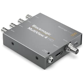 O Blackmagic Design MultiView 4 HD é um miniconversor compacto que permite exibir até quatro fluxos SDI separados por meio de suas saídas HDMI de 10 bits ou SDI multi-view. Esta unidade é compatível com os formatos SD / HD / 3G-SDI e possui detecção automática de sinal, deslocamento de relógio SDI e suporte para monitor EDID. Além disso, cada visualização pode exibir sobreposições personalizadas, como rótulos e medidores de áudio, e a interface USB 2.0 integrada pode ser usada para atualizações. A caixa de metal MultiView 4 HD mede aproximadamente 5.3 x 3.6" e inclui uma fonte de alimentação com adaptadores internacionais. Marca: Não Informado