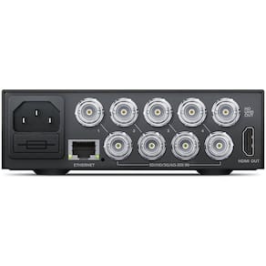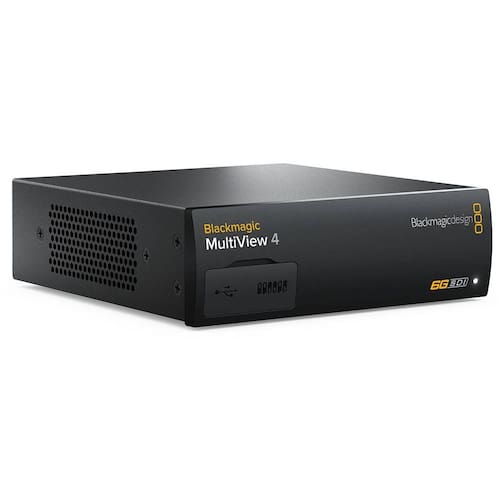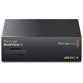 O Blackmagic Design MultiView 4 possui quatro entradas 6G-SDI de 10 bits que permitem monitorar fontes SD, HD ou 4K em qualquer combinação em monitores ou TVs Ultra HD. Isso permite que você aproveite as exibições de alta resolução para ver cada fonte com mais clareza. O MultiView 4 permite uma exibição 2x2 com cada entrada totalmente ressincronizada. Uma saída 6G-SDI e uma saída HDMI multi-view são fornecidas, bem como uma saída loop-through para cada entrada 6G-SDI para passar sinais para dispositivos adicionais.
