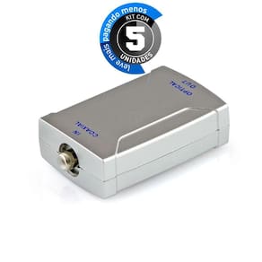Conversor coaxial para óptico - kit com 5 se você tem um aparelho com saída coaxial e precisa conectar em um aparelho com entrada óptica esse conversor coaxial para óptico é a solução. De uma maneira bem simples e sem driver de instalação esse conversor é ideal, por exemplo, para ligar aparelhos de tv a cabo em televisores com entradas apenas digital óptico. Não perca tempo ou troque os seus equipamentos. Características: entrada: rca coaxial saída: óptica alimentação: bivolt garantia: 3 meses conteúdo da embalagem: 1 conversor / 1 fonte de energia bivolt homologação anatel: 040961908724