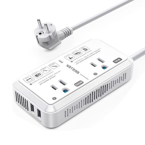 Plugue tipo E de alta qualidade, compatível com plugue tipo F, comumente utilizado em todos os países da UE, exceto Reino Unido, como França, Alemanha, Islândia, Finlândia, Grécia, Groenlândia, Hungria, Itália, Noruega, Dinamarca e outros países tipo E/F da UE/fora da UE. - BESTEK Adaptador de viagem: Este conversor de tensão de viagem é a versão mais recente da BESTEK. Tem uma potência máxima de saída de 2000 W e é compatível com dispositivos de tensão única de 110 V e tensão dupla de 100 a 240 V. Isso o torna adequado para viagens e negócios na Europa. - Conversor de tensão dos EUA para a Europa: este conversor de energia tem 2 tomadas CA e 2 portas USB, permitindo que você carregue até 4 dispositivos eletrônicos simultaneamente. Uma das tomadas CA pode converter tensão de 100-240V para 100-120V, com uma potência máxima de saída de 2000W. É adequado para dispositivos com entrada US 100-120V, como secadores de cabelo, chaleiras elétricas e chapinhas. A outra tomada CA suporta entrada dupla de 100-240V e tem uma potência máxima de saída de 200W. É ideal para carregar aparelhos de baixa potência como laptops, celulares, tablets e alisadores de cabelo. - Essenciais de viagem: um plugue tipo E de alta qualidade que é compatível com plugues tipo F comumente utilizados em todos os países da UE, exceto no Reino Unido. Esses países incluem França, Alemanha, Islândia, Finlândia, Grécia, Groenlândia, Hungria, Itália, Noruega, Dinamarca e outros países do tipo E/F da UE/não UE. - Proteção de segurança: segurança NRTL testada. Oferece proteção contra sobrecorrente, sobrecarga, sobreaquecimento e curto-circuito. Possui um ventilador de resfriamento silencioso para mitigar efetivamente o superaquecimento. Nossa tecnologia exclusiva de proteção de isolamento segrega efetivamente as tomadas CA das portas USB, melhorando assim a segurança do carregamento de dispositivos eletrônicos. - Satisfação: um produto para viagens por toda a Europa - Conversor de tensão dos EUA para a Europa. Garantia de 18 meses sem preocupações, suporte ao vendedor de 7/24 horas e atendimento ao cliente.
