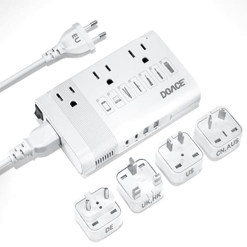 DOACE Conversor de 220 V para 110 V para viagens europeias - Conversor de tensão de 350 W para Europa com 4 carregadores QC+PD para usar dispositivos dos EUA no exterior - Alisador de cabelo, escova de dentes, laptop, câmera, telefone