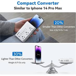 - [Tecnologia de conversão automática inteligente] O chip AI patenteado converte automaticamente tensão de 100-240 V + frequência de 50/60Hz para o padrão dos EUA 110V/60Hz – basta ligar e usar. Protege seus dispositivos em todo o mundo.