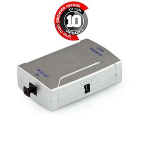 Conversor Óptico Para Coaxial - Kit Com 10 Com o Conversor Óptico para Coaxial você poderá transformar o sinal óptico para o sinal coaxial. Indicado para conectar um aparelho de DVD ou um dispositivo de som com entrada coaxial digital para um amplificador digital ou gravador com saída óptica. Acompanha fonte de energia. Características: Entrada: óptica Saída: rca Coaxial Alimentação: bivolt Garantia: 3 meses Conteúdo da embalagem: 1 Conversor / 1 Fonte de Energia Bivolt Ean: 7890786855153