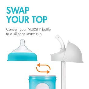 PRODUTO INTERNACIONAL. Eleve sua experiência de cuidados com o seu bebê para o próximo nível com o Top de Conversão de Palha de Silicone. Perfeito para as mamadeiras NURSH de 8 onças, esta palha de silicone transforma a sua garrafa em um copo de palha infantil