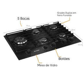 Cooktop Mueller MCG5BM 5 Bocas Tripla Chama com Mesa de Vidro