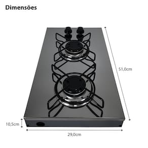 ? Acabamento profissional em inox escovado – visual moderno e fácil de higienizar 🔥 Dois queimadores rápidos de aproximadamente 2000W cada 🧼 Limpeza facilitada – superfície lisa e trempes removíveis 👌 Estabilidade e segurança – trempes esmaltadas com ótimo apoio para as panelas 📦 Portátil e compacto – ideal para quem tem pouco espaço ou precisa de mobilidade