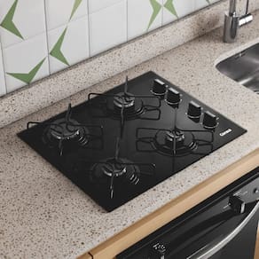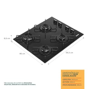 Conteúdo da Embalagem: 01 Cooktop 4 Bocas a Gás CD060BE com Grades Estáveis e Mesa de Vidro Temperado Consul