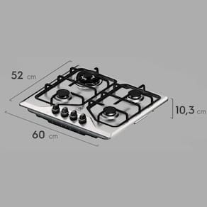 Com dimensoes de 10,3x60x52 cm, este cooktop se adapta facilmente a diferentes espacos, otimizando o layout da sua cozinha. Alem disso, ele e bivolt, oferecendo ainda mais flexibilidade na instalacao.