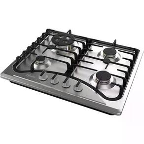 Cooktop a gás semiprofissional com 4 queimadores, incluindo 1 triplo. Potência total de 8,4 kW. Acendimento automático e válvula de segurança.Luz de calor residual
