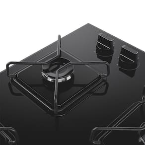 Cooktop a gás com 4 bocas, acabamento em vidro temperado preto, acendimento automático, bivolt.Luz de calor residual