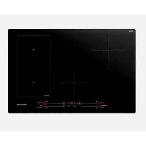 Cooktop Brastemp de indução com 4 bocas, tecnologia Flexizone, Smartcook, trava de segurança e timer inteligente. Aquece apenas a área de contato da panela.Luz de calor residual