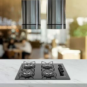 Cooktop 4 bocas com mesa em vidro temperado, acendimento superautomático e botões removíveis que facilitam a limpeza. Trempes antideslizantes para garantir a estabilidade das panelas.Luz de calor residual
