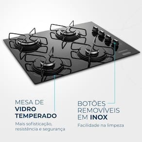 O Cooktop a Gás 4 Bocas CTG-01 une qualidade e potência a um design moderno que vai trazer sofisticação para a sua cozinha. Possui mesa com melhor disposição e aproveitamento entre as bocas, 4 queimadores com potência total de e mesa de vidro temperado. Os botões têm acabamento em aço inox e são removíveis, permitindo uma limpeza eficaz e evitando o acúmulo de gordura. Saiba mais sobre o CTG-01 da Mondial: